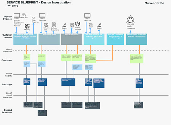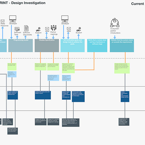 In the past if a customer wanted specific IP from Arm for a System on Chip design (SoC), say a Cortex A76 CPU, they have to first obtain a license to use it. Upon that license payment, the customer gets the required tools and support to implement that CPU in their design. This works well for larger companies, however in a new competitive environment it could be a potential barrier to innovation for startups, smaller OEMs, and product suppliers. This is evident in the automotive industry where advances in new technology adoption, and drive for autonomous vehicles, has seen a growth in new startup investment, but their innovation is being curtailed somewhat by need to use standard 'off-the-shelf' electronics rather than custom designed in order to realize the full product potential. I was lead product UX designer working in the customer experience CX team along with UX designers, user researchers, and UX opps. The CX team worked on a number of key linked initiatives with service design of a new disruptive business model and new way of working at its core.