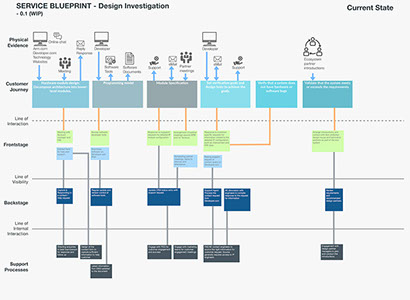 With clear goals, focus and product direction from the design sprint, along with tested prototypes and customer feedback I was able to construct the service design blueprint, which in conjunction with the internal process flows and IT system requirements created the framework for the Flexible Access service from sales engagement, order processing, customer portal, and support functions.