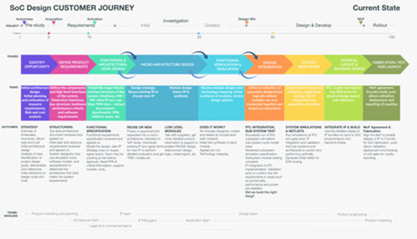 My focus was to use service design methodology to create the best customer experience. In-depth customer discovery activities were performed conducting extensive user and domain research via customer interviews, attending conferences, and talking to subject matter experts to build a detailed understanding of the Silicon on Chip (SoC) process along with stakeholder interviews, business canvas and value proposition.