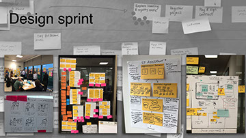We had a total of 26 people attending (slightly larger than normal for design sprint - but not everyone was there full time) covering business change, legal, marketing, product, IT, and of course customer experience. Following the design sprint framework day1 was about goals, lightening talks, personas, journey map and defining the moments that matter. Day2 was about the vision, competitors, and sketch hacks. Day3 was about voting, choosing a theme, and prototype requirements. Day4 was about creating the prototype and Day5 was testing this with real customers.