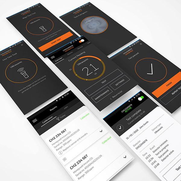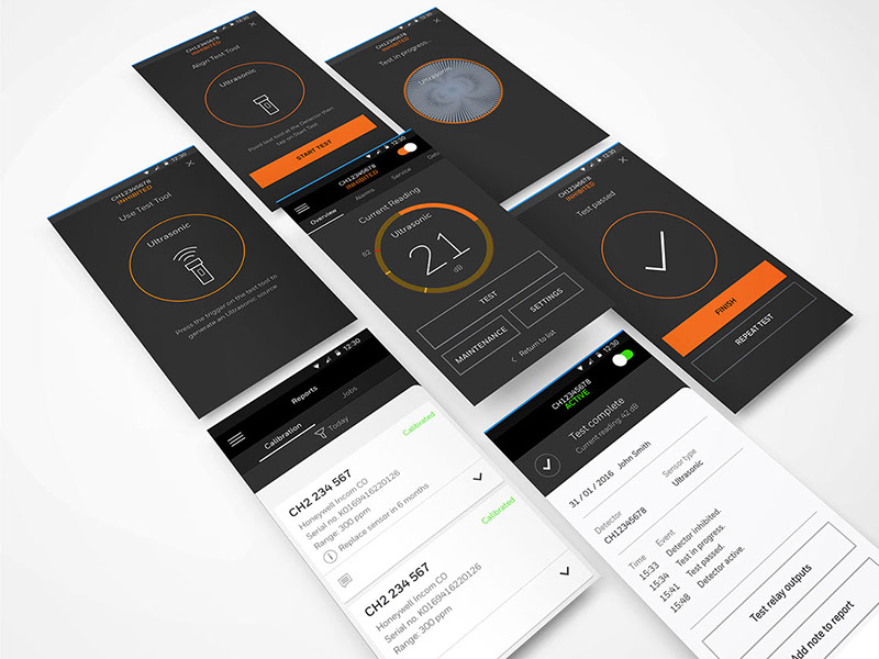 Ideating designs for a mobile companion app utilising the gas sensor secure bluetooth connection, enabling simple, quick, maintenance and calibration tasks required design of the sensor embedded UI (LED display & lights) to align the visual cues such as sensor isolation and active status with the mobile app UI to act as feedback loop confirming status, progress, and actions performed with the mobile app.