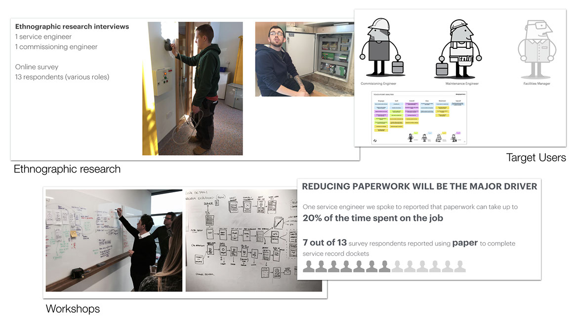 To understand the problem and to find out more about the user journey, pain points and needs, I conducted a series of research consisting of ethnographic and observational research for the target users. This high-lighted the pain point around the administrative overhead, along with the opportunity of improving the maintenance tasks