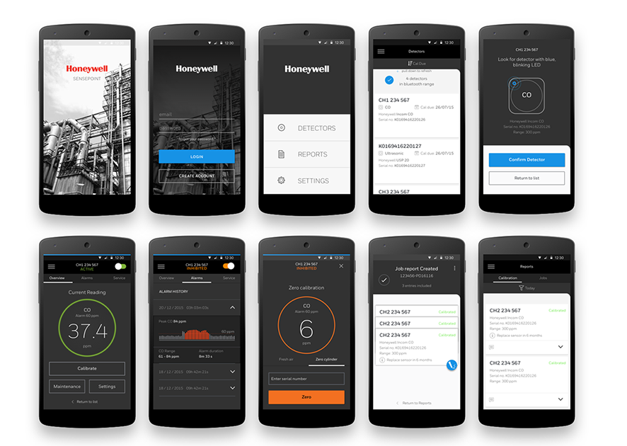 Industries such as gas plants needed to improve efficiency & productivity whilst seeking a zero incident safety record in a bid to reduce costs and improve brand image, at the risk of loosing competitive advantage. I was Lead Product / UX Designer with Honeywell Design Studio HDS providing end-to-end designs for new range of connected Industrial/Commercial gas detectors (Sensepoint) as part of an overall safety protection IoT enterprise solution for commercial buildings, manufacturing plants, and oil & gas production. Working with industrial designers to create a minimal, effective hardware platform.
