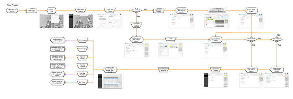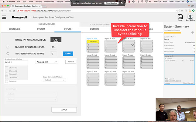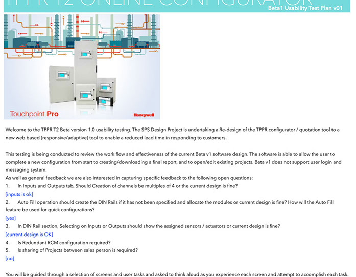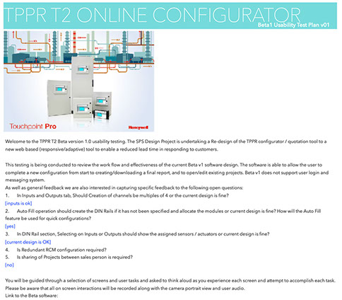 Following successful early testing, a more detailed prototype was created to capture the end-to-end flow of common use case configurations. This was further tested with the sales and channel partners in several countries (including the US, UK, EMEA), but also as the new design was based on the premise of being web based and accessible via the cloud, a version could be made available for the customer to explore and work on pre-configuration ideas. So testing of the prototype with customers was necessary to gain feedback on this idea.