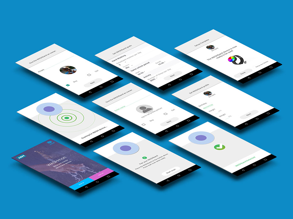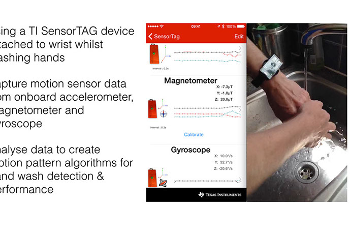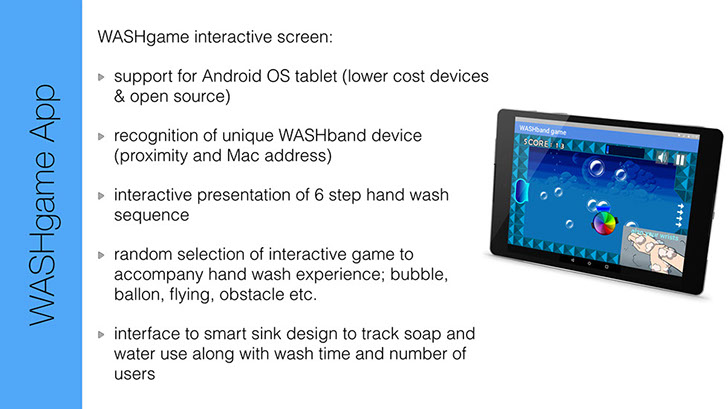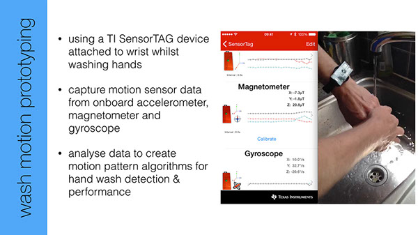 A submission to Unicef and ARM design challenge to encourage regular hand-washing and transfer of good hygiene practice. Use of gameification techniques to affect behavior change with specific algorithms to detect and measure hand wash movements.