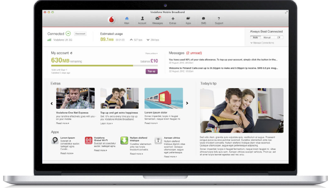 With the findings from user testing the hardware and software components were iterated and improved resulting in a complete re-imaging of the hardware; creating the worlds first USB mobile data dongle, enabling secure ‘plug-n-play’ network connections faster than WiFi hotspot authentication. Along with a simple, trusted desktop client to manage the device, network connections, and new data services (such as instant messaging). A web portal enabled users to view/manage profile information (such as data usage, tariffs, services), and explore relevant content. Establishing Vodafone as the market leader in Mobile data services.