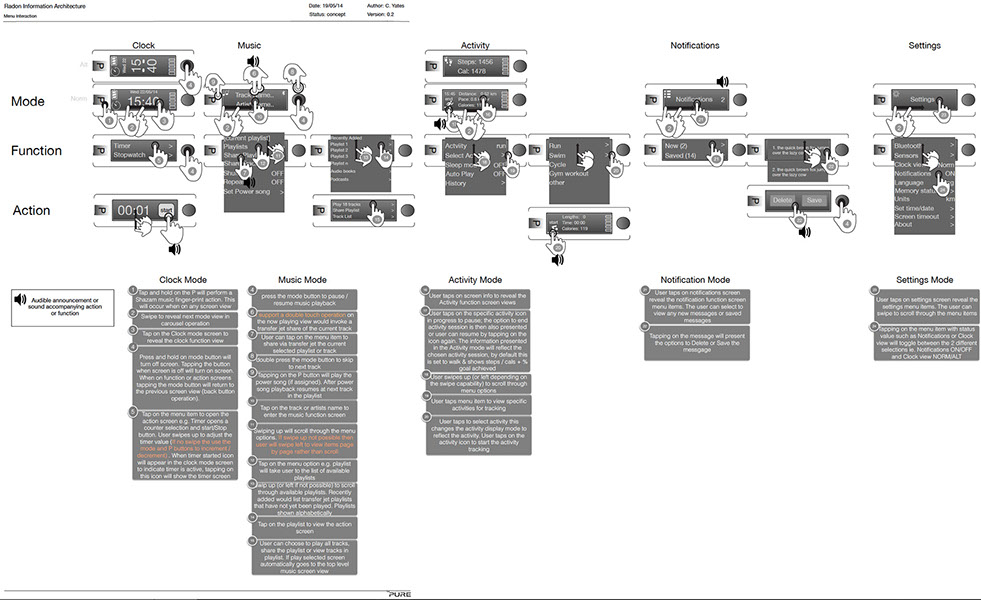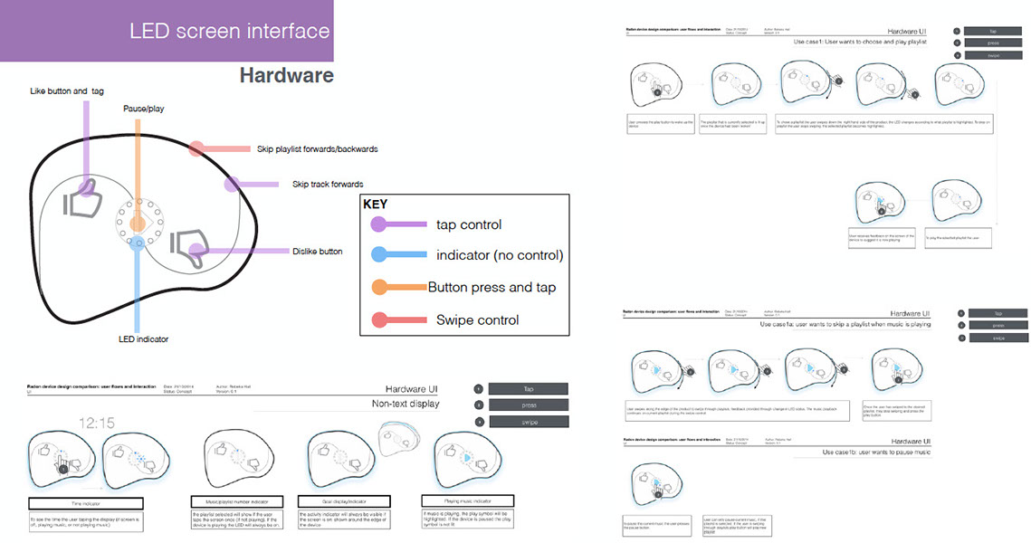 Project to research, understand, and create new UX concepts and designs for innovative music wearable device products, services, and companion mobile app; involving extensive market, user research and industry awareness, product evaluation and market category analysis, user journeys, flows, top task analysis, ideation workshops, sketching and concept creation, ID, UI design, paper prototype testing, user interaction design and testing, service design.
