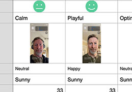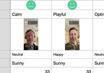 This week saw the addition of a new data point to the experiment to test its potential benefits to simplifying the data capture process, that of Facial EMG. Electromyography (EMG) is the measurement of the underlying electrical activity that’s generated when muscles contract. Facial EMG, specifically, pertains to electromyography that is specific to the muscles of the face that can be used to detect facial expression (Ekman & Friesen’s Facial Action Coding System FACS), where facial expressions are divided up into Action Units representing individual movements of the face. The Action Units described in FACS relate to Joy, Surprise, Fear, Anger, Sadness and Disgust. These can be mapped to the same emoji icon selections that are used to capture mood. Since all smartphones now have a front facing camera, there is a way to use the camera and the FACS analysis to automatically determine mood level. Early testing gave mixed results with 70% correlation to the manually selected mood emoji. However a potential useful side effect of using the Facial EMG detection was that a photo image ‘selfie’ of the face was captured at the same time, giving a more personal view to the reflective historical analysis of mood, by being able to browse through my mood ‘selfies’.