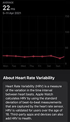 It was important when considering HRV data in my experiment to establish a baseline by averaging the day and night data recorded over several days, and to keep adjusting this baseline with the averaging of HRV data over ever increasing time periods. How current HRV values compares to the baseline, and whether this trends up or down, can help you know how to approach your day (e.g., prioritising rest or face a challenge). Comparing your daytime check-ins to your general baseline can give you insight into how certain activities, like meditation or exercise, affect your system. How HRV trends over a few weeks can help you identify if you’re successfully rebounding from taxing days (e.g., training, illness, stress), and how HRV changes over months can reveal how major lifestyle changes (e.g., a new job, being in lock-down) are impacting your health.