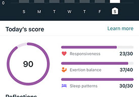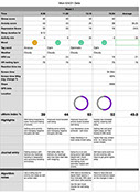 With sleep duration a similar scenario exists where there is a recommended daily target of 8 hours, and a rolling average to compare with the previous weeks average to provide direction of trend. In addition as lack of sleep is a compound effect where 3 or more continuous days of poor sleep has a higher effect on well-being than a single night of poor sleep and this was reflected in the well-being score.