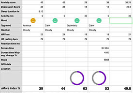 Tracking helps identify patterns in mood and factors that affect emotions. This can help to better understand emotions or to target unwanted behaviours or coping methods. Unlike many of the physiological factors mood and how you are feeling can change throughout the day. Noting these changes can help identify both emotional and external triggers that affect how you feel. In addition relating the mood and emotions to the physical data can high-light how lifestyle, diet, sleep patterns, and activity levels all affect mood. With this you can begin to predict when certain situations will lead to negative emotions and develop healthy coping mechanisms for handling them. In effect you become more attuned to what factors worsen or benefit your mental health and know when to reach out for help.